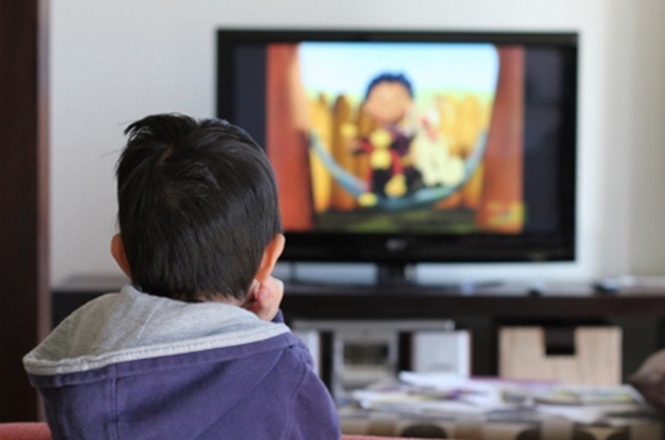 Giữ khoảng cách an toàn khi xem tivi để chăm sóc mắt cho trẻ