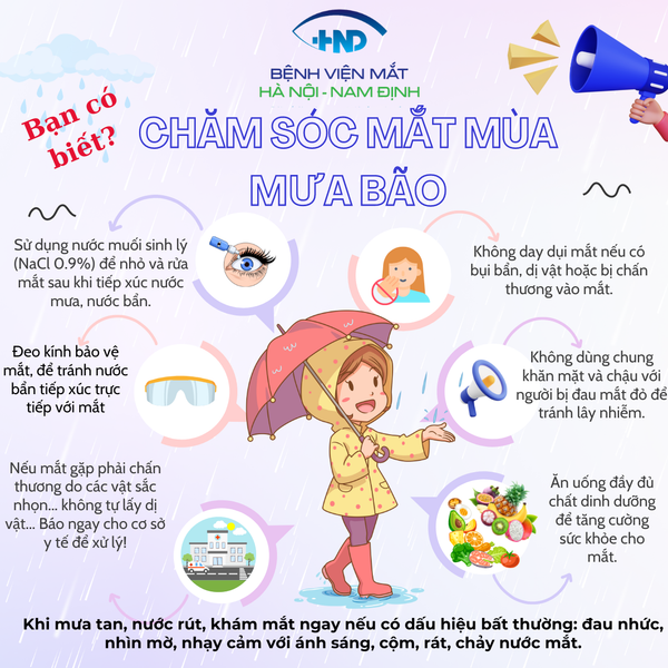 🔷Để bảo vệ mắt trong mùa bão lũ, bạn hãy cùng theo dõi những chia sẻ từ các Bác sĩ Bệnh viện Mắt Hà Nội - Nam Định về việc cần chú ý một vài điểm chăm sóc mắt sau đây nhé: