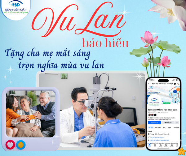 Tháng 7 đến, "Mùa Vu Lan - Mùa Hiếu Hạnh" gõ cửa cũng là lời nhắc nhở con cháu về đạo lý “uống nước nhớ nguồn”, biết ơn công sinh dưỡng của mẹ cha mà làm điều hiếu nghĩa. Bạn hãy để Bệnh viện Mắt Hà Nội - Nam Định đồng hành cùng bạn làm tròn chữ “HIẾU” khi đem lại ánh nhìn tinh anh cho đôi mắt mờ nhòe vì đục thủy tinh thể của mẹ cha.